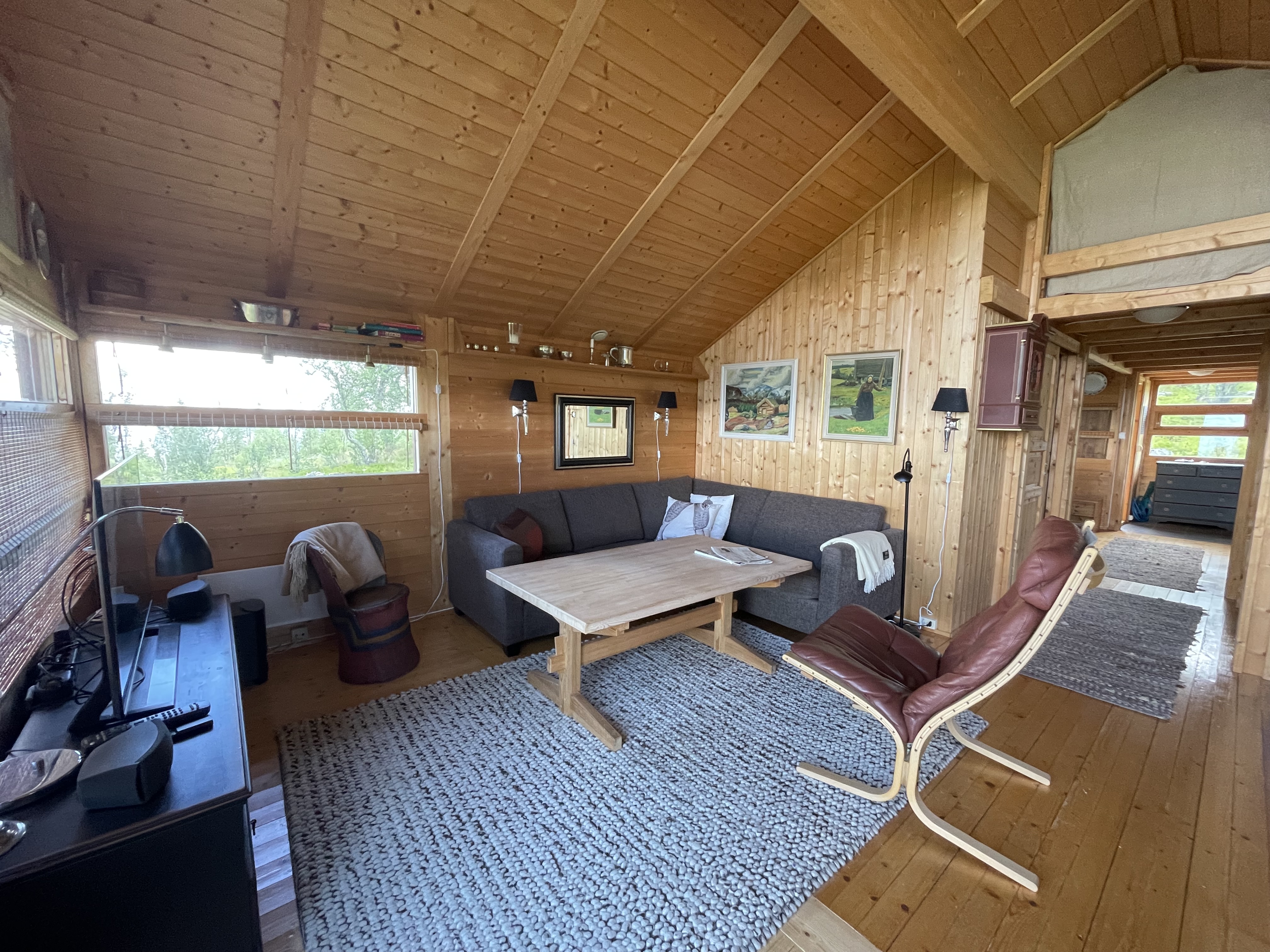 Hytta har alt du trenger for en komfortabel og avslappende fjellopplevelse, med strøm, vann og moderne fasiliteter. I stuen finner du en koselig peis for kalde kvelder, samt en smart-TV, DVD-spiller og radio som gir deg både underholdning og muligheten til å slappe av etter en aktiv dag ute i naturen.